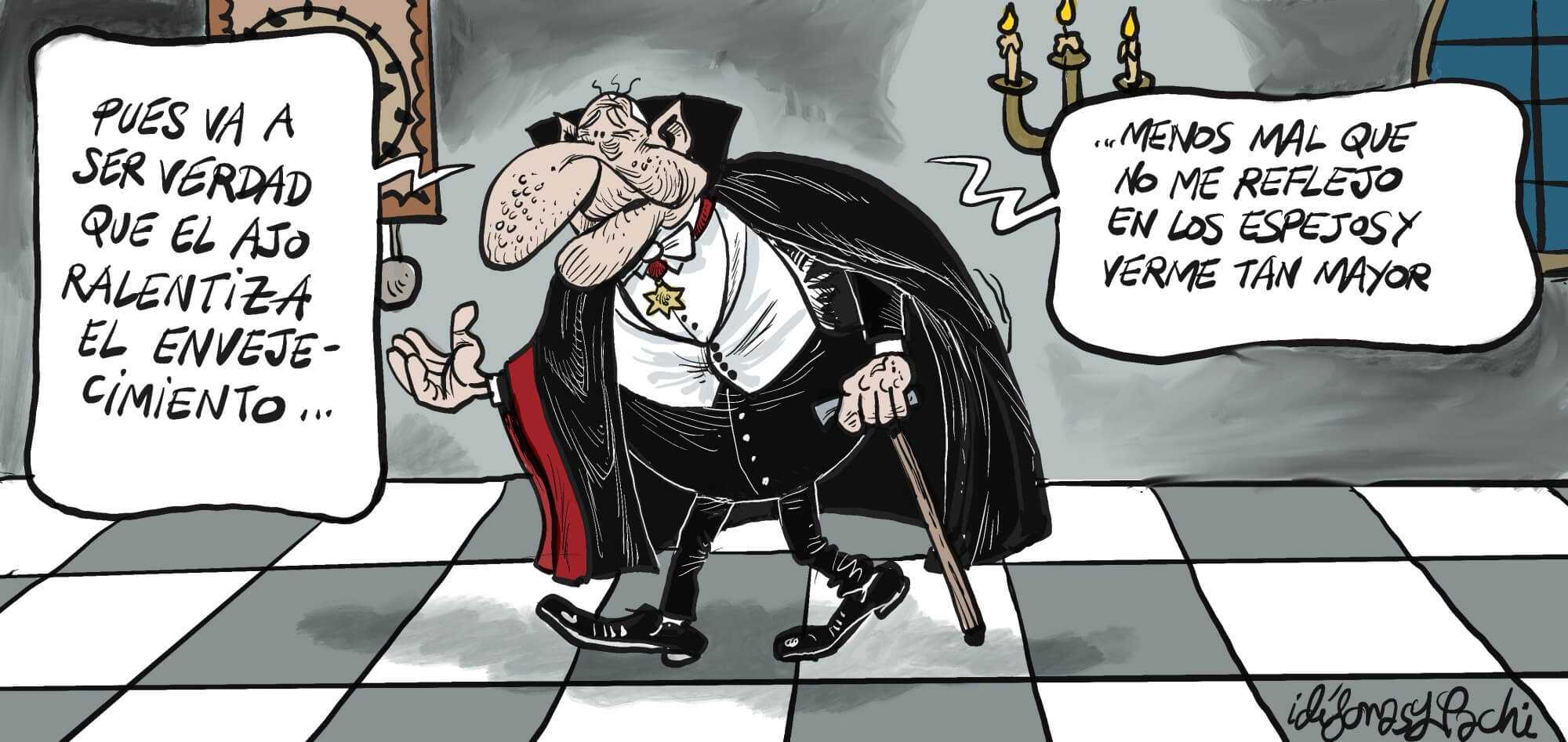 ¡El secreto de la eterna juventud esta en… los ajos! Pobre conde, siempre alérgico a los ajos.
