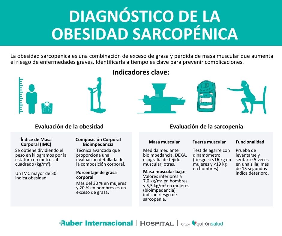 Debe valorarlo un especialista mediante pruebas de composición corporal, medición de fuerza y evaluación funcional.