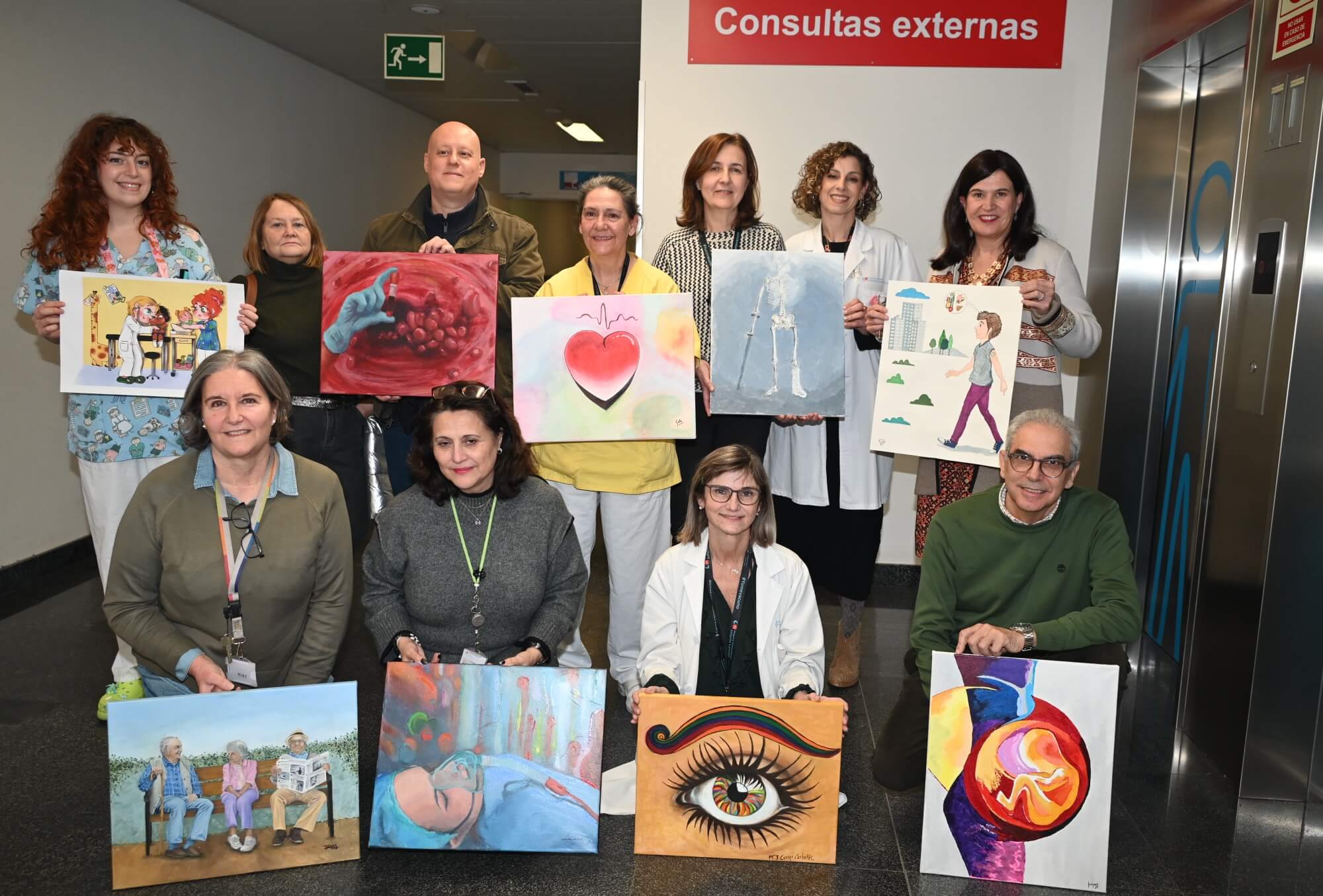 Los cuadros en su formato original, cedidos por los autores y autoras que han participado en este proyecto, están expuestos en el pasillo del bloque A de la planta baja del Hospital Universitario Infanta Leonor.